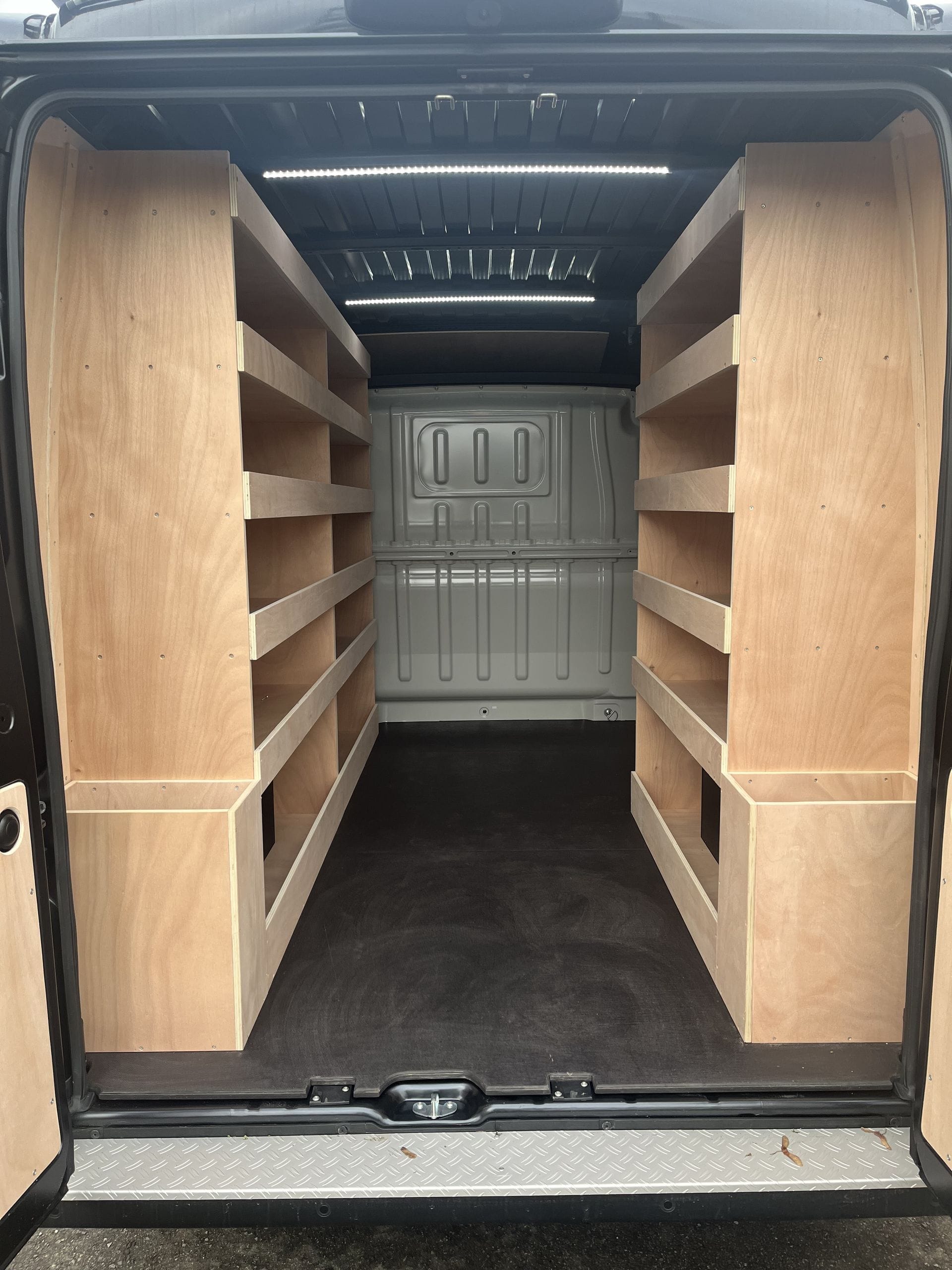 Que vous souhaitiez simplement une finitions bois élégante ou un aménagement complet adapté à votre activité, notre équipe de menuisiers certifiés travaille à partir de votre véhicule et de vos exigences pour créer un intérieur à votre image.
